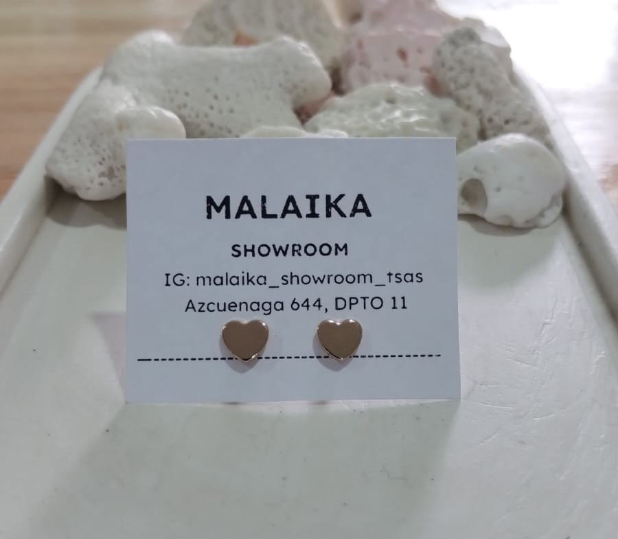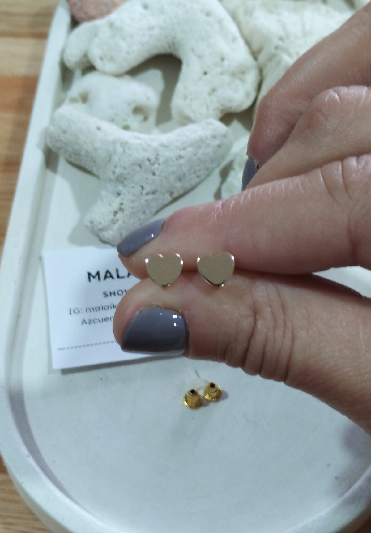 Aros pasantes corazones dorados. Vienen con dos pares de tuercas, uno de metal y uno de silicona.