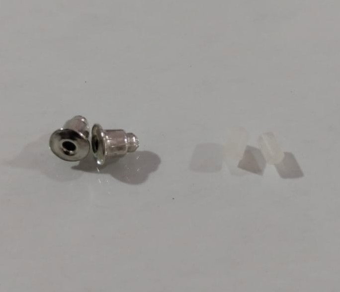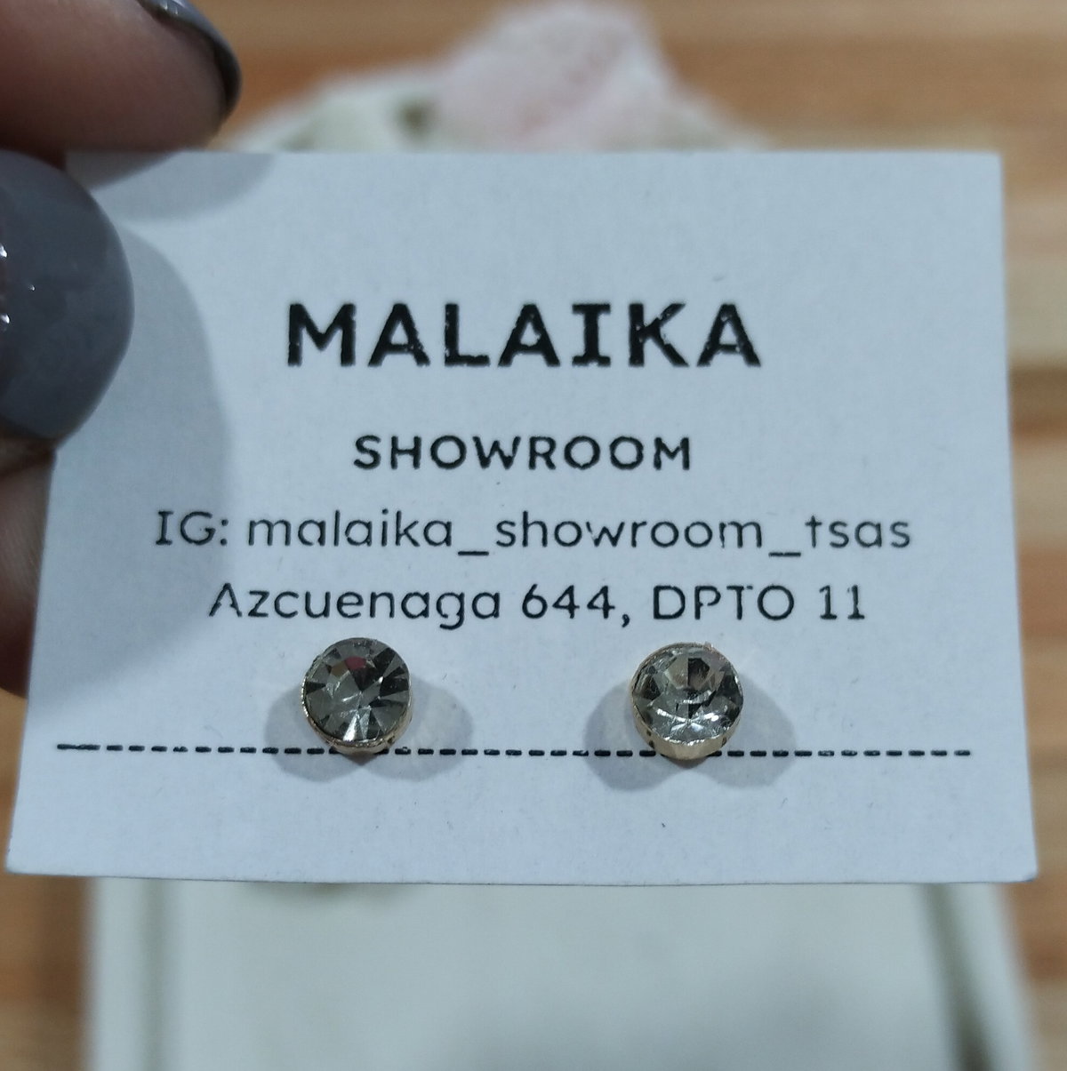 Aros dorados con strass. Vienen con dos pares de tuercas, uno de metal y uno de silicona.