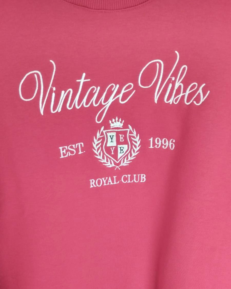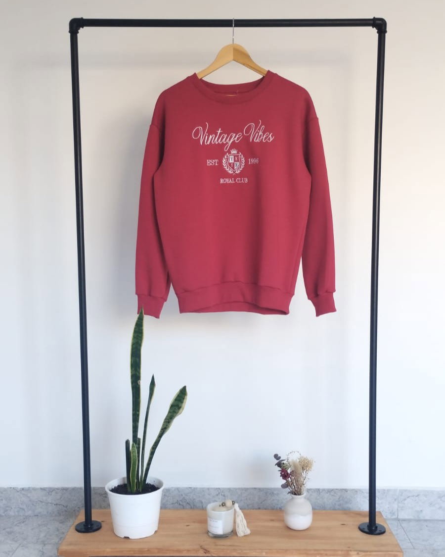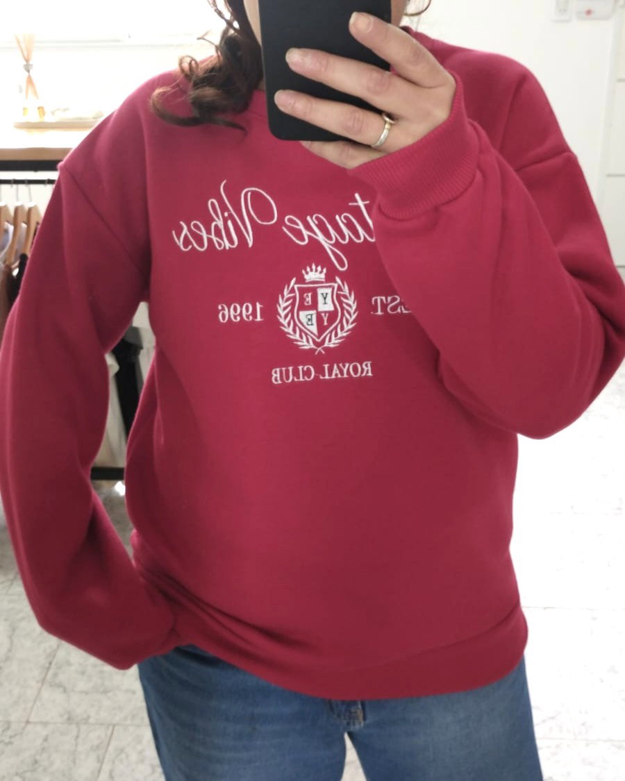 Buzo de algodón frisado con bordado en la parte delantera. Disponible en rojo y en azul.