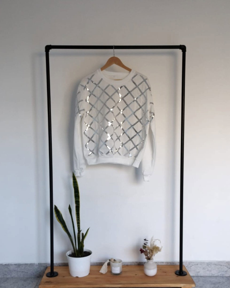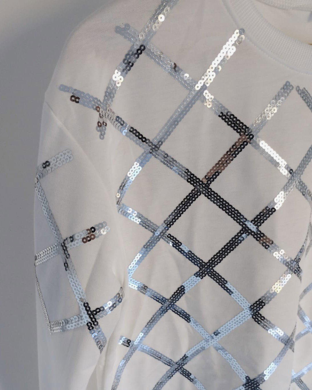 Buzo de algodón rústico con detalle en lentejuelas plateadas.
