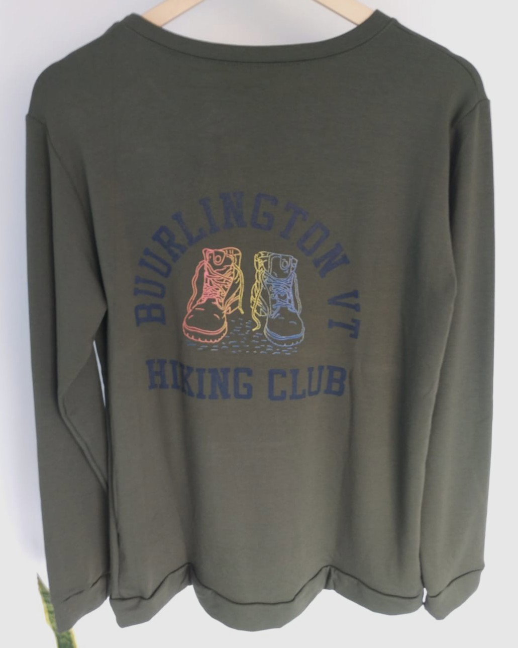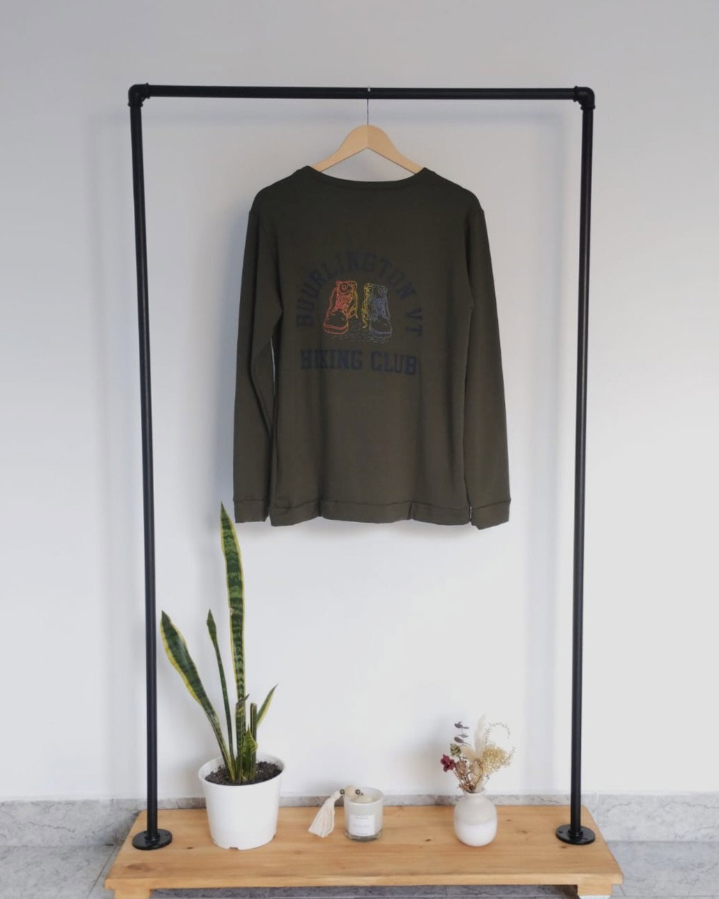 Buzo de algodón frisado con estampa. Disponible en color verde.