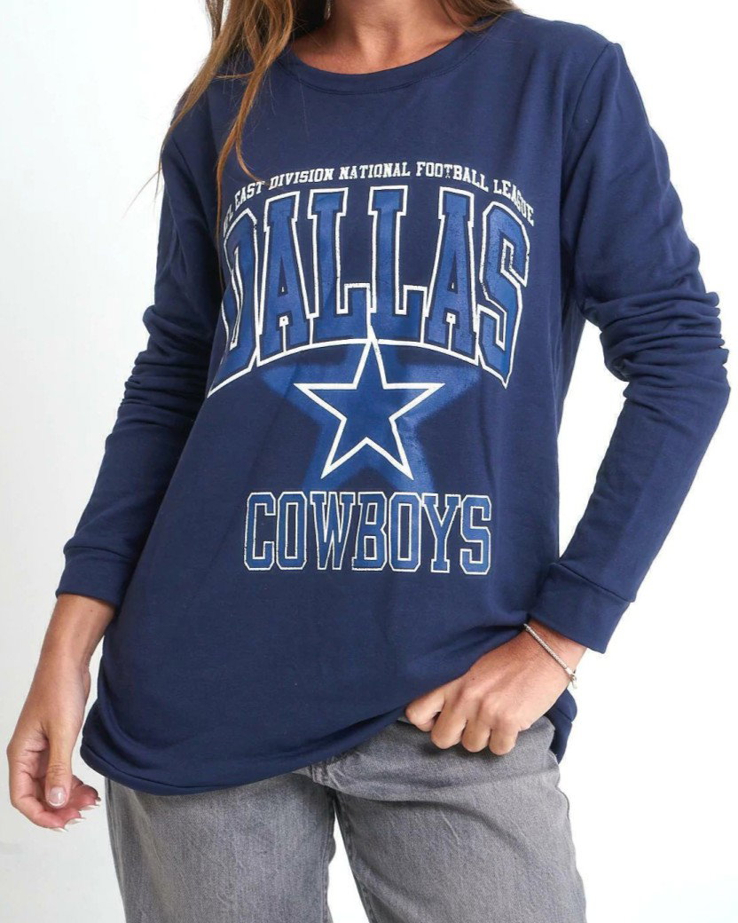 Buzo de algodón frisado con estampa. Disponible en color azul.