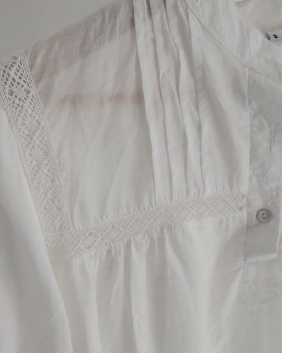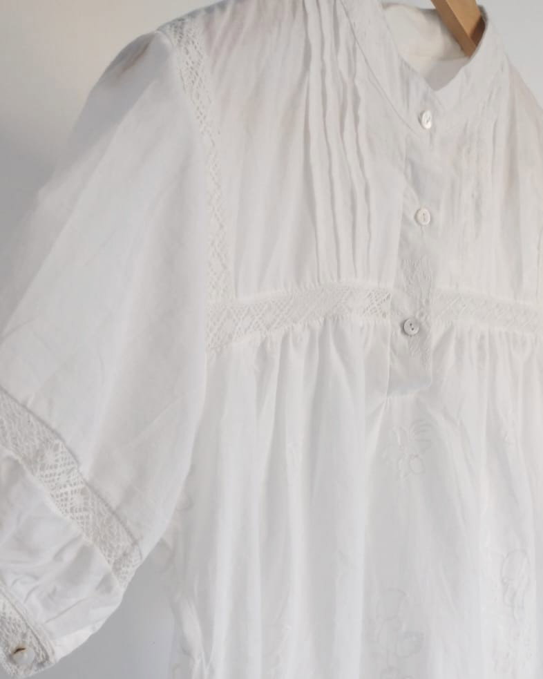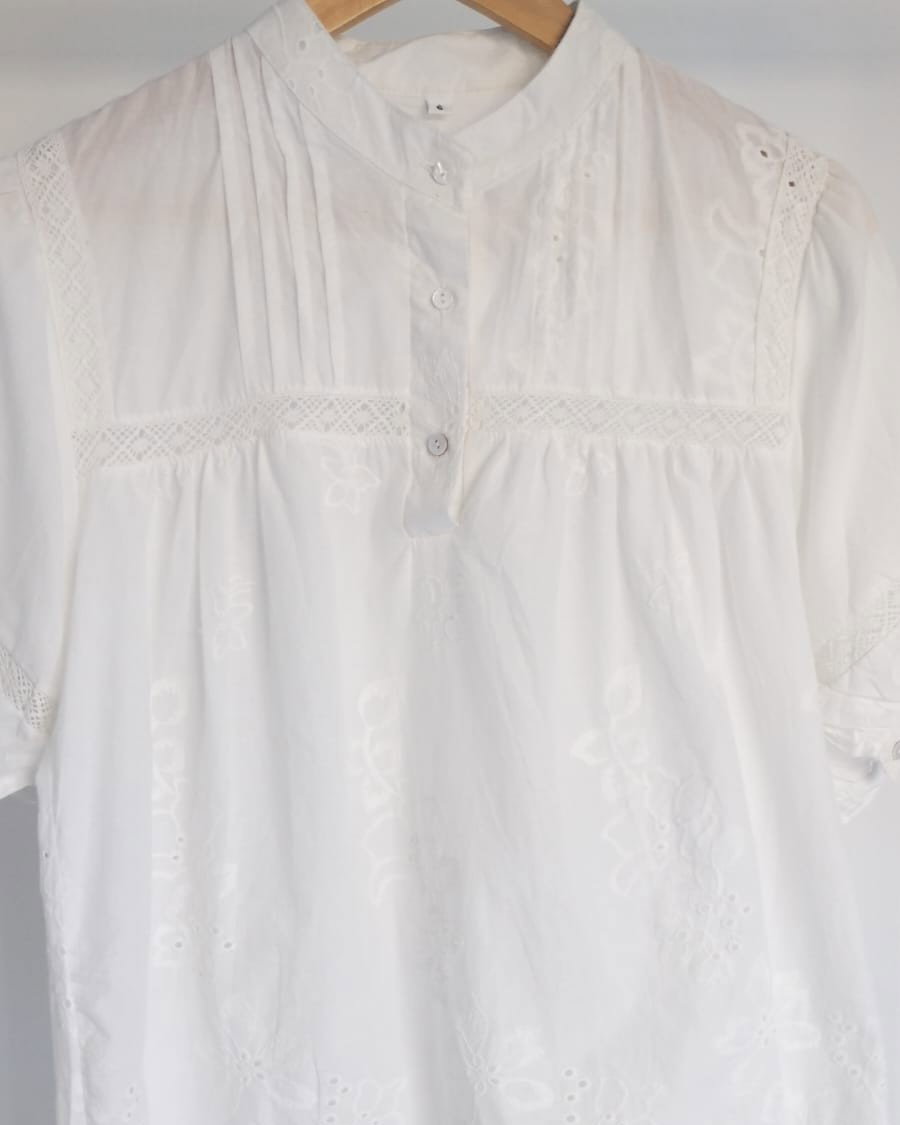 Camisola de algodón bordada con distintos relieves. Disponible en color blanco.