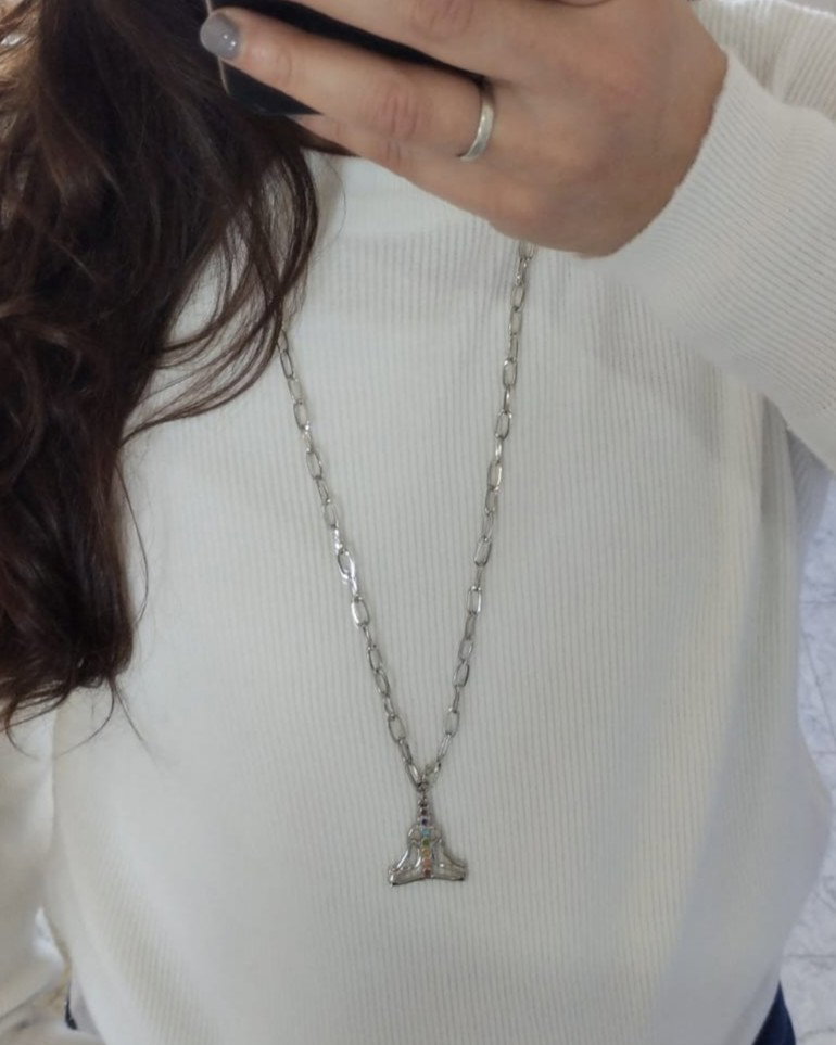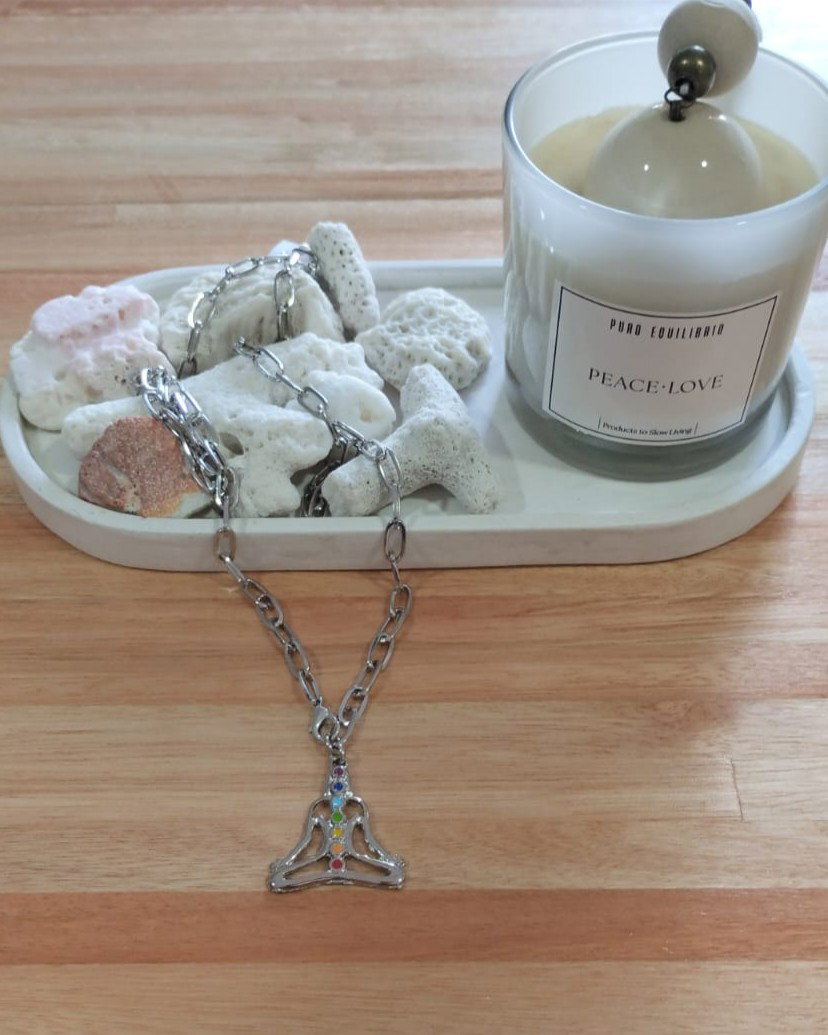 Collar largo de cadena de hierro y dije 7 chakras. Tambiém lo podés usar corto de 2 vueltas.