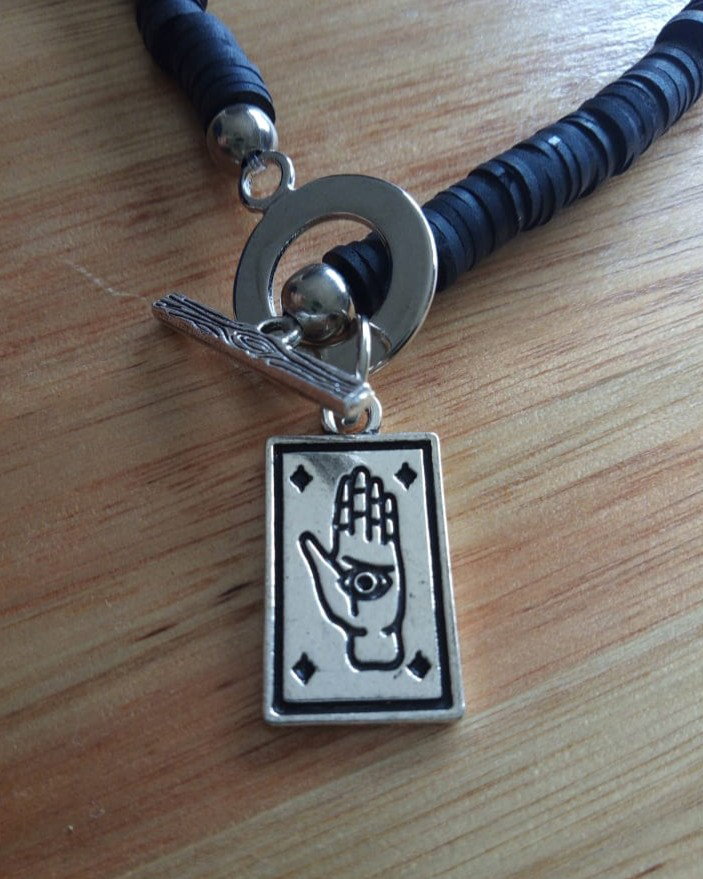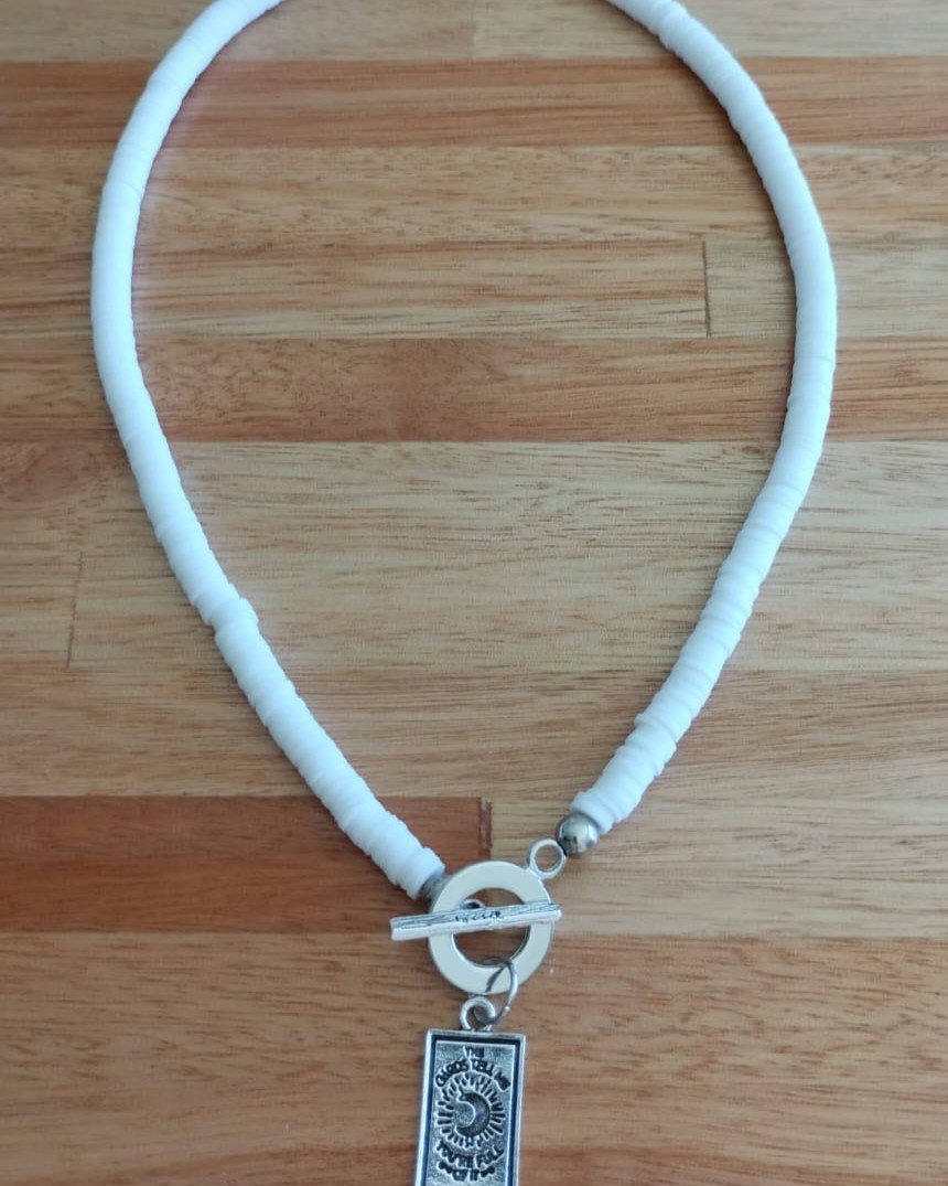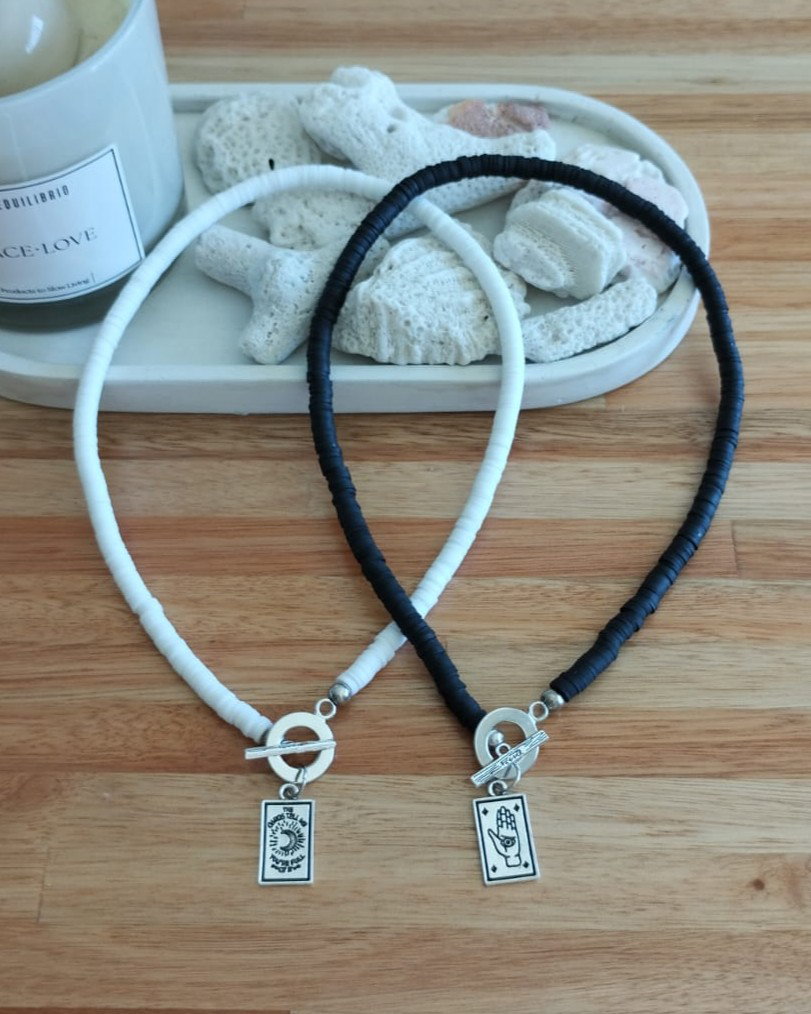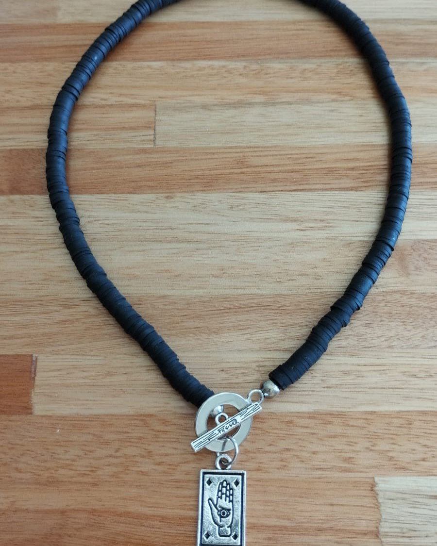 Collar corto de fimo con dije de fundición y cierre marinero. Viene con cadena de alargue.