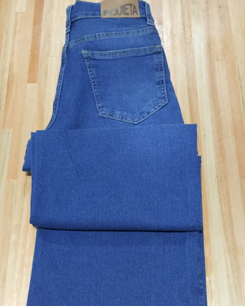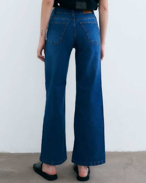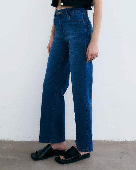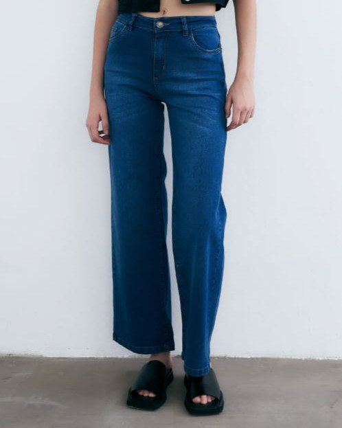 Jean wide leg elastizado pierna semi ancha. Tiro medio.