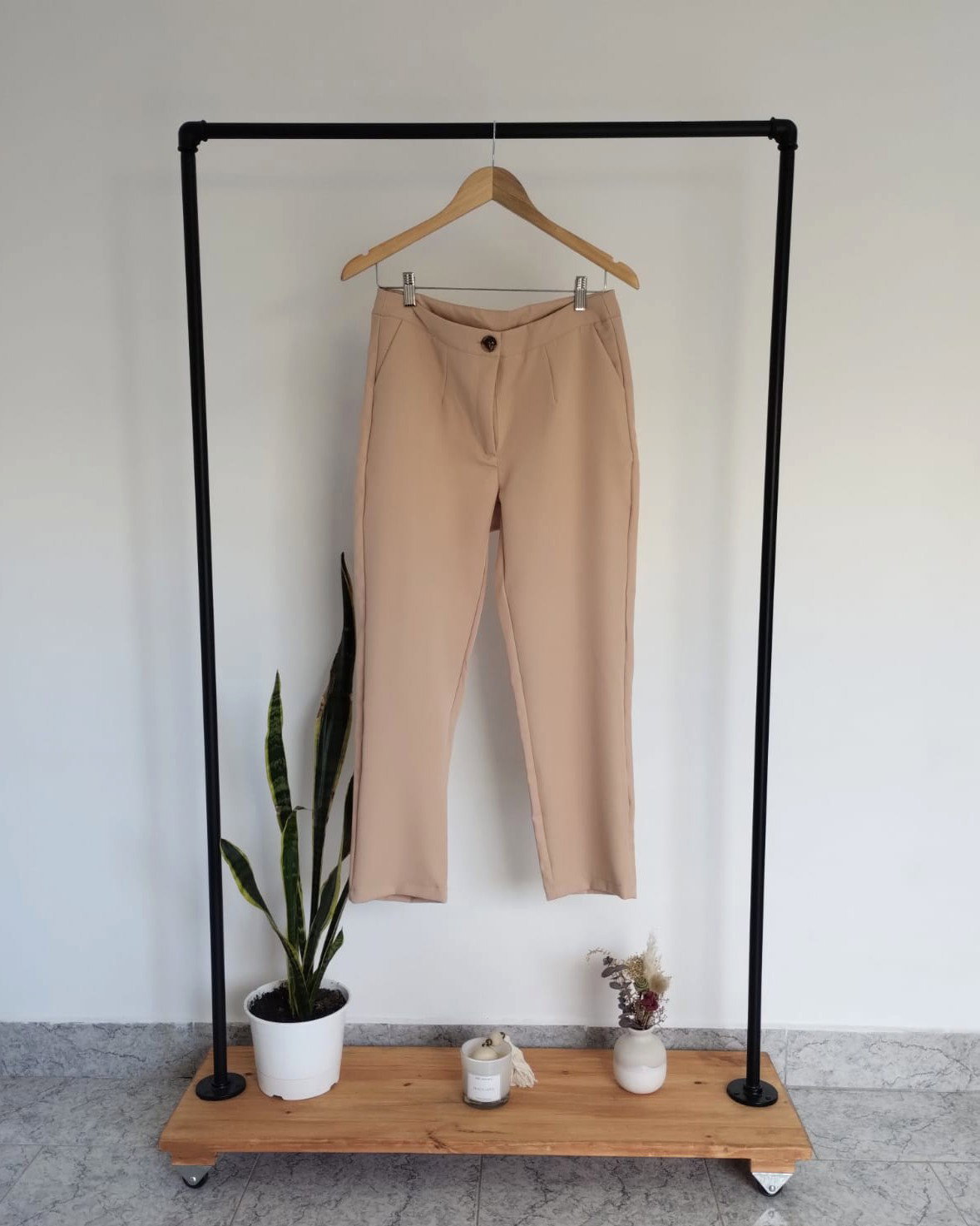 Pantalón sastrero. Disponible en color beige y en negro.