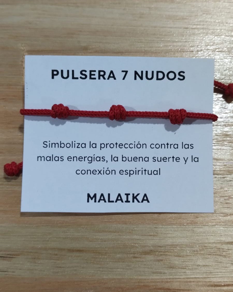 Pulsera 7 nudos, con nudo regulable que permite ajustar el largo de la pulsera.