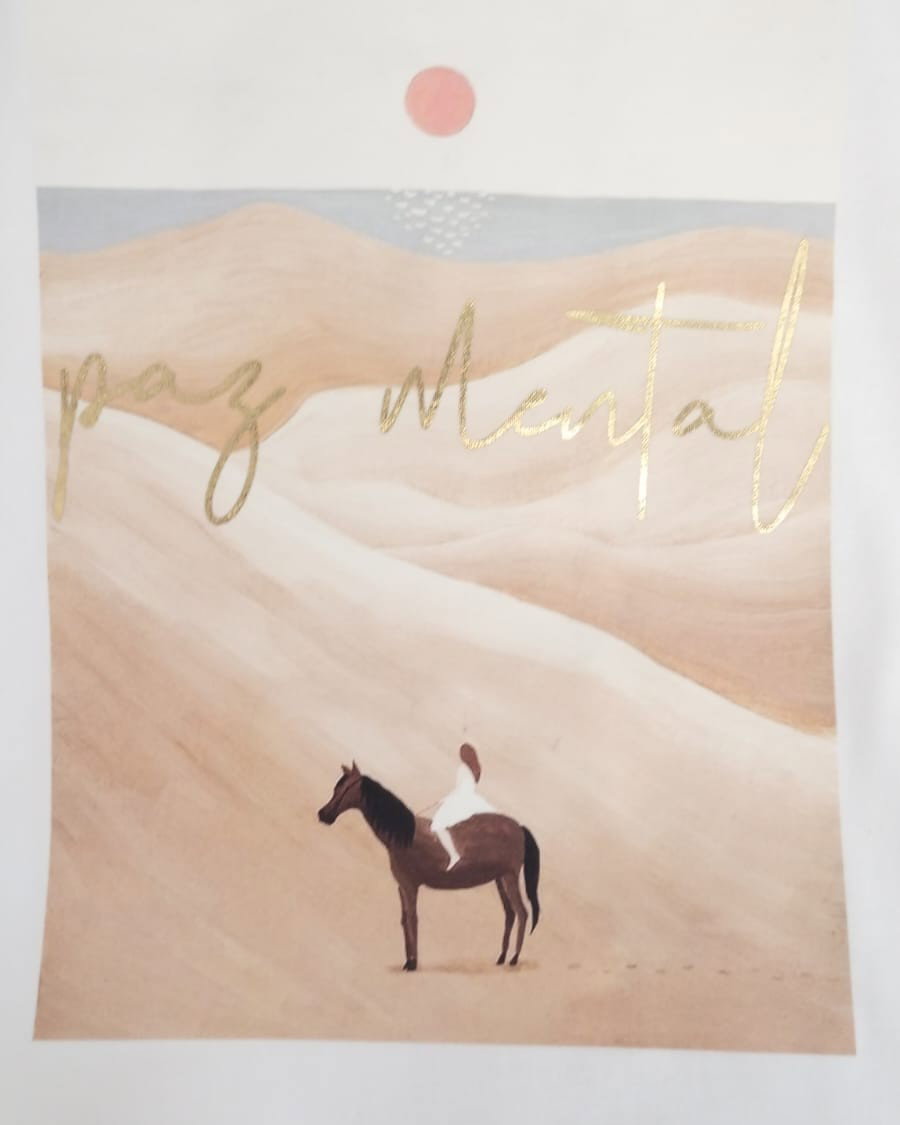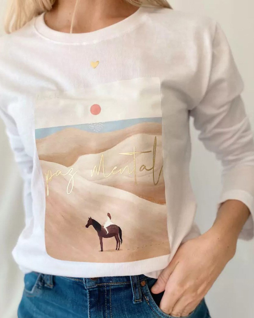 Remera de algodón premium, manga larga con estampa PAZ MENTAL. Disponible en color blanco.