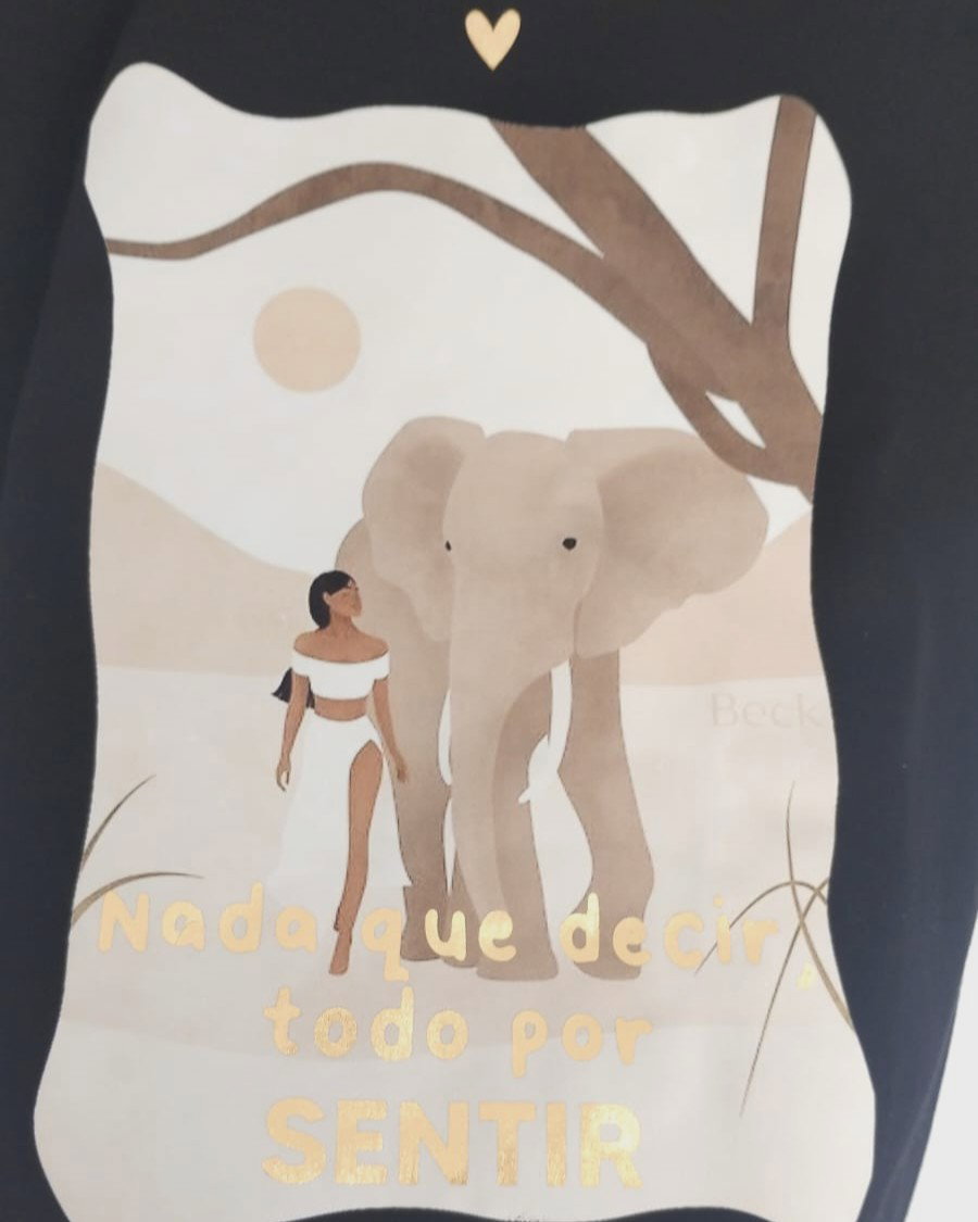 Remera de algodón premium, manga corta y escote V, con estampa NADA QUE DECIR, TODO POR SENTIR. Disponible en color negro.