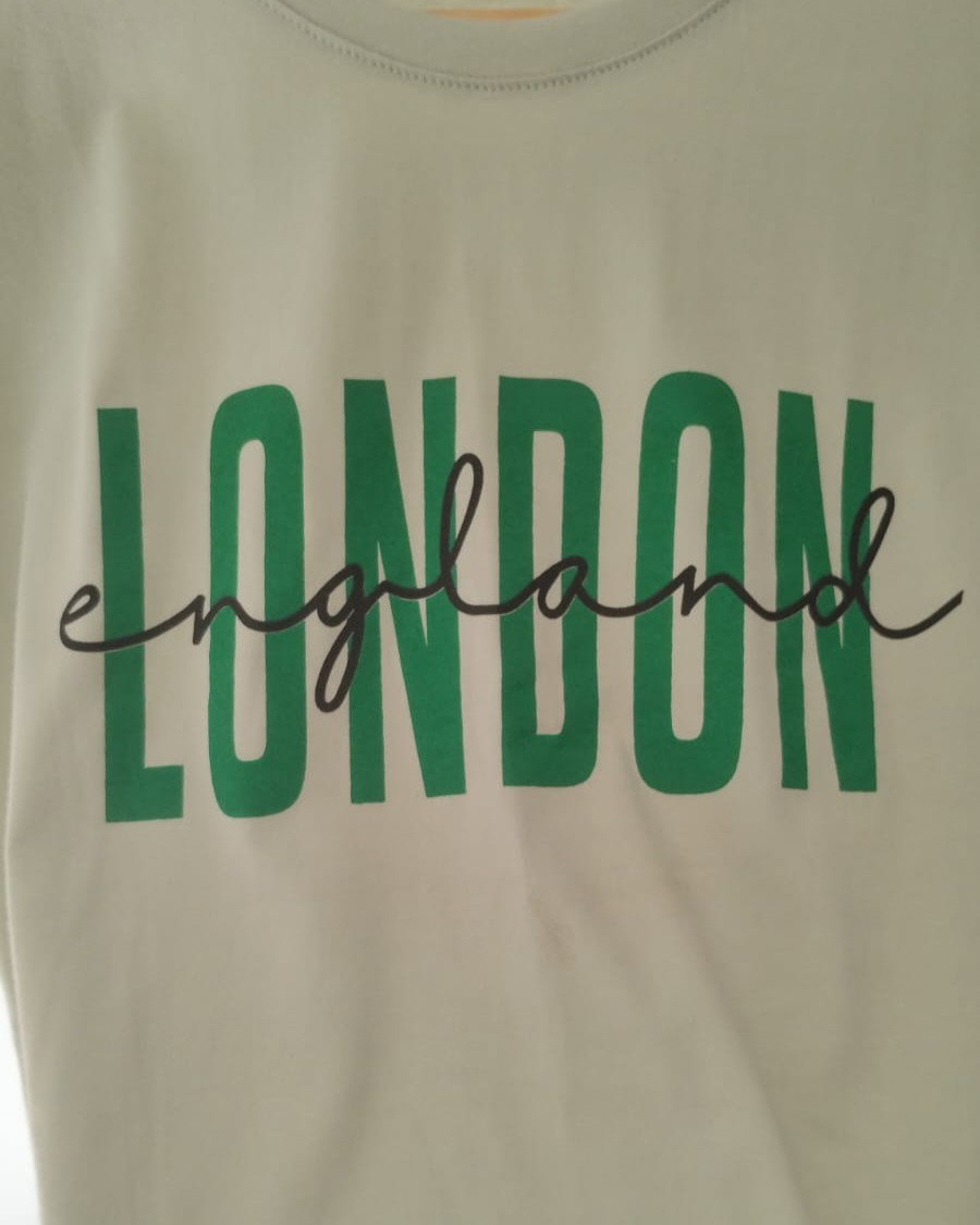 Remera de algodón manga corta, con estampa LONDON. Disponible en color verde.