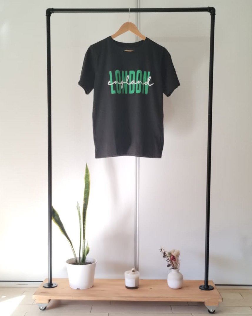 Remera de algodón manga corta, con estampa LONDON. Disponible en color negro.