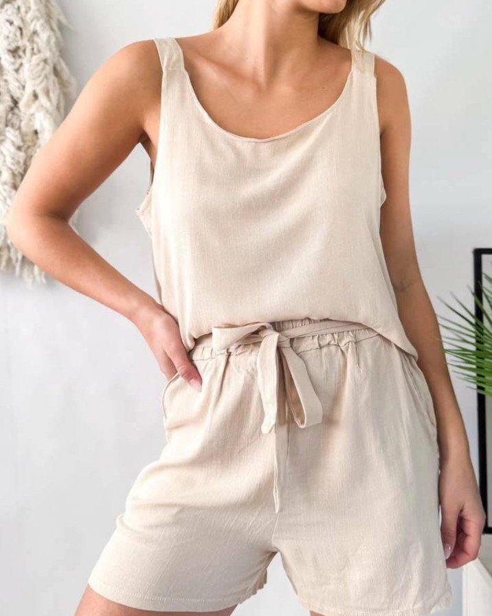 Musculosa de lino con spandex.