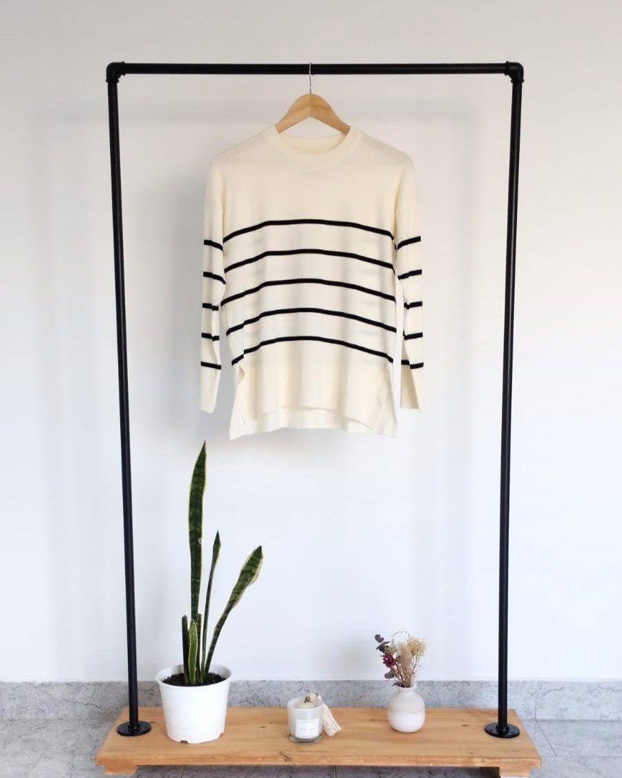 Sweater de bremer rayado. Disponible en color blanco con rayas negras y en negro con rayas blancas.