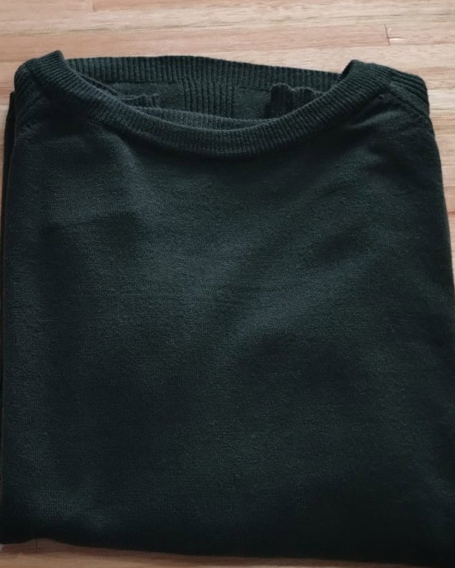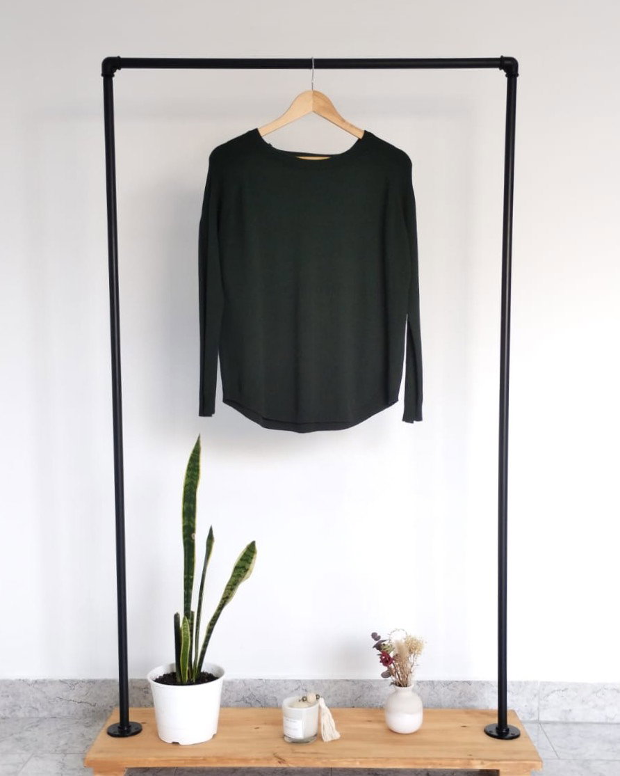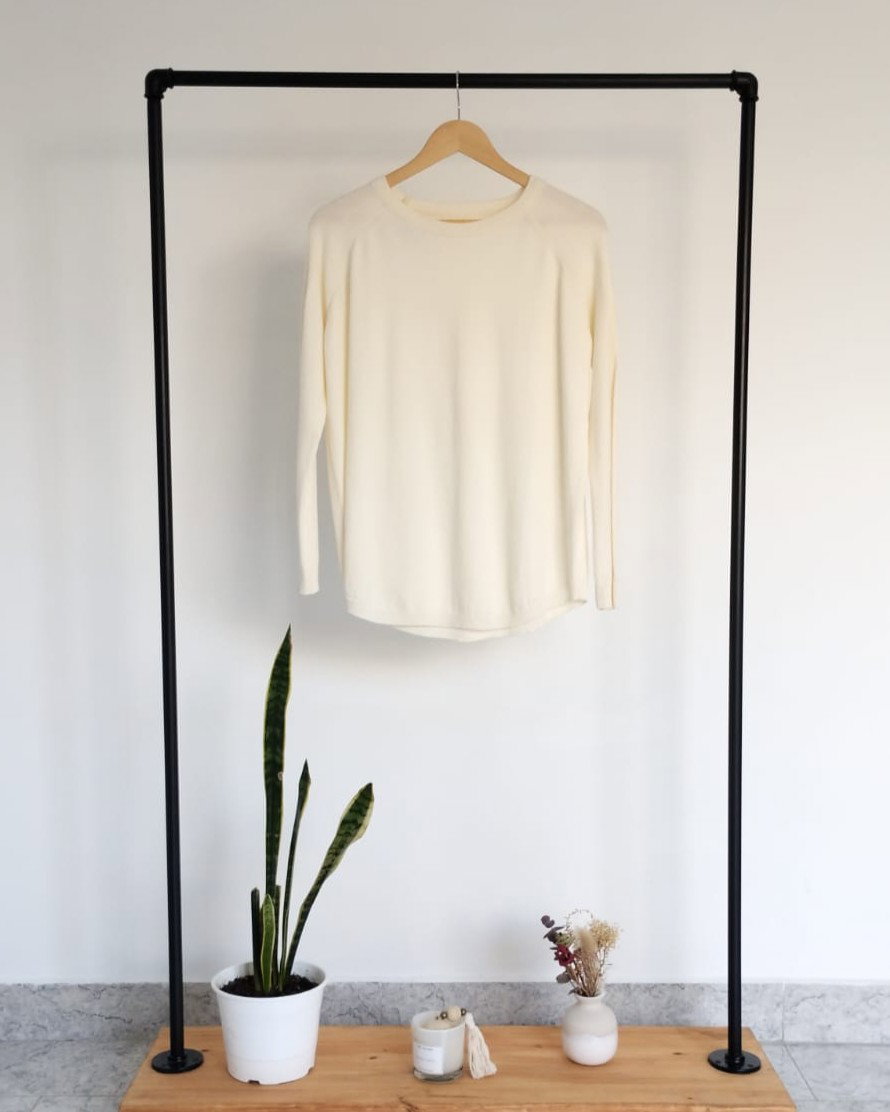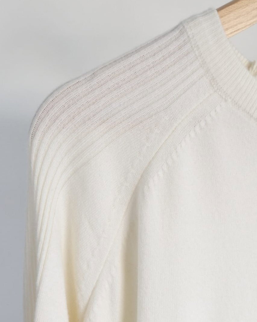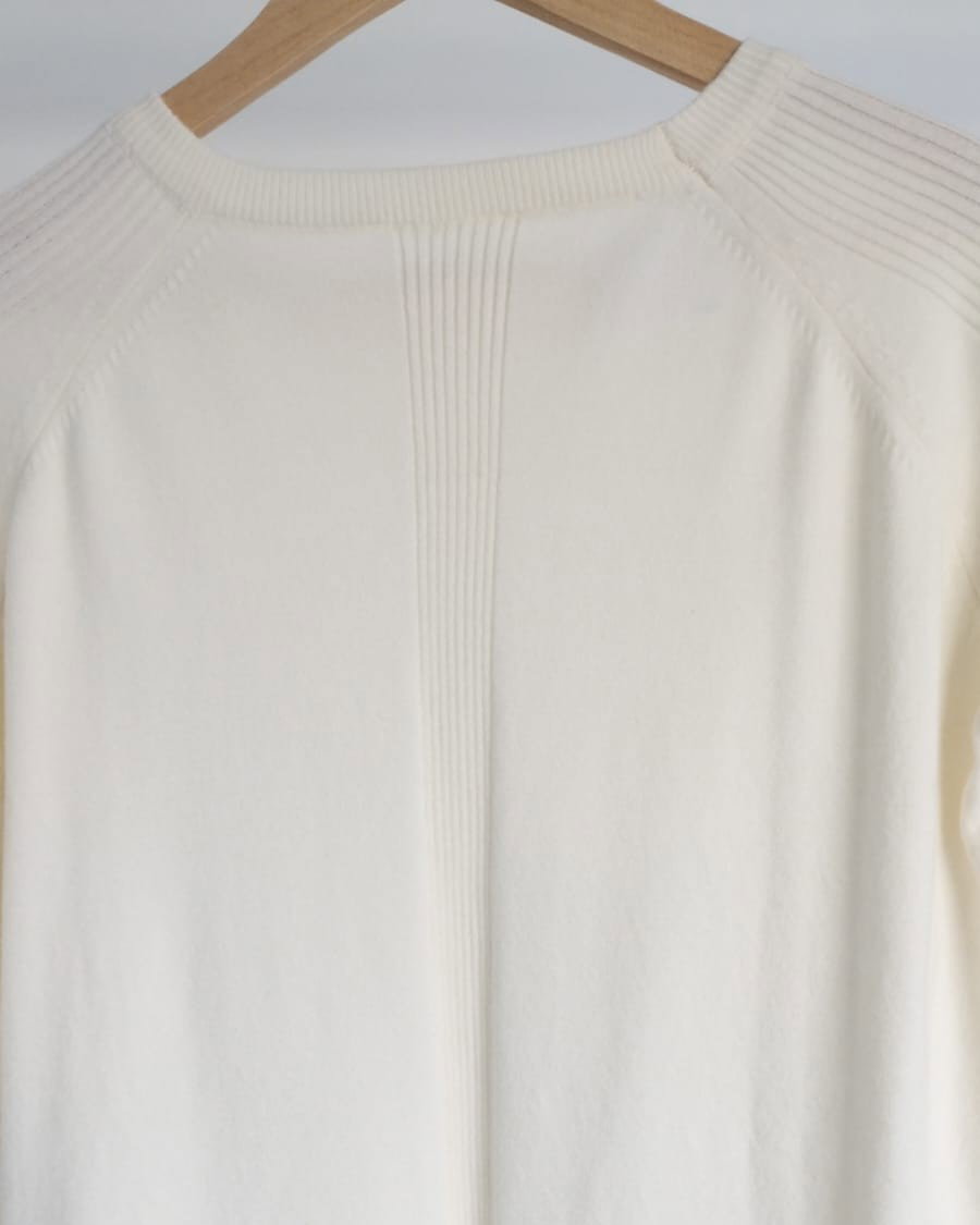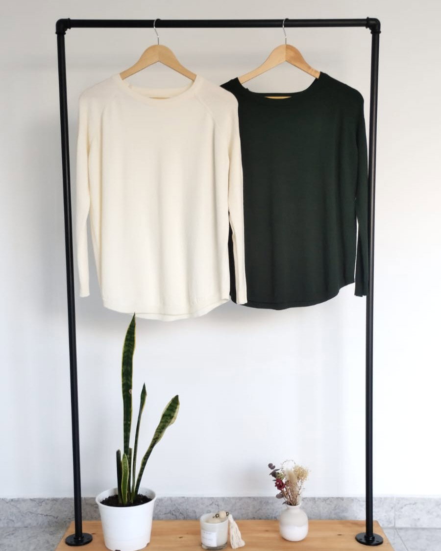 Sweater de bremer con detalle en espalda y mangas. Disponible en crudo y en verde.